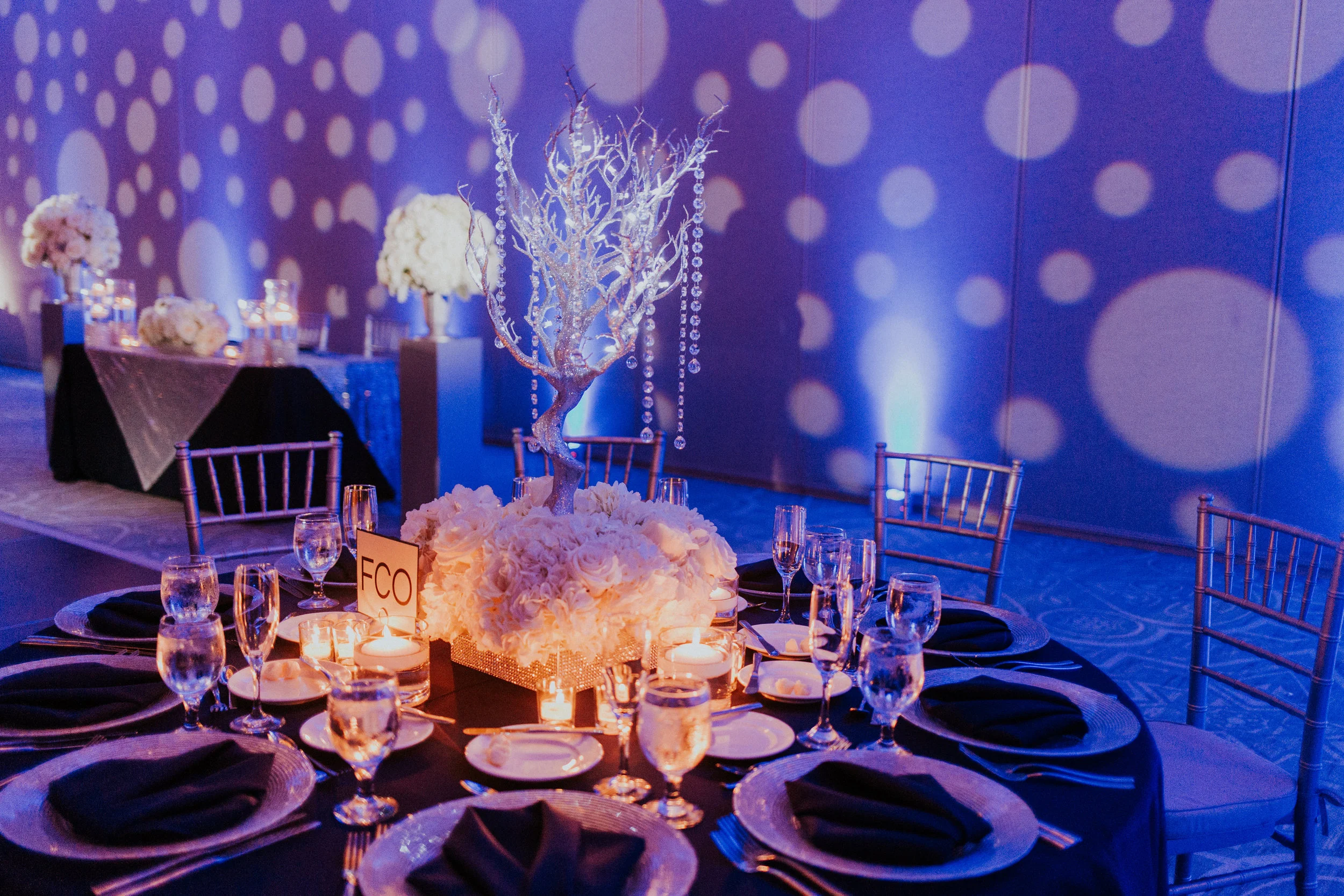 Chargers, Stage, Tables - Orlando Wedding and Party Rentals